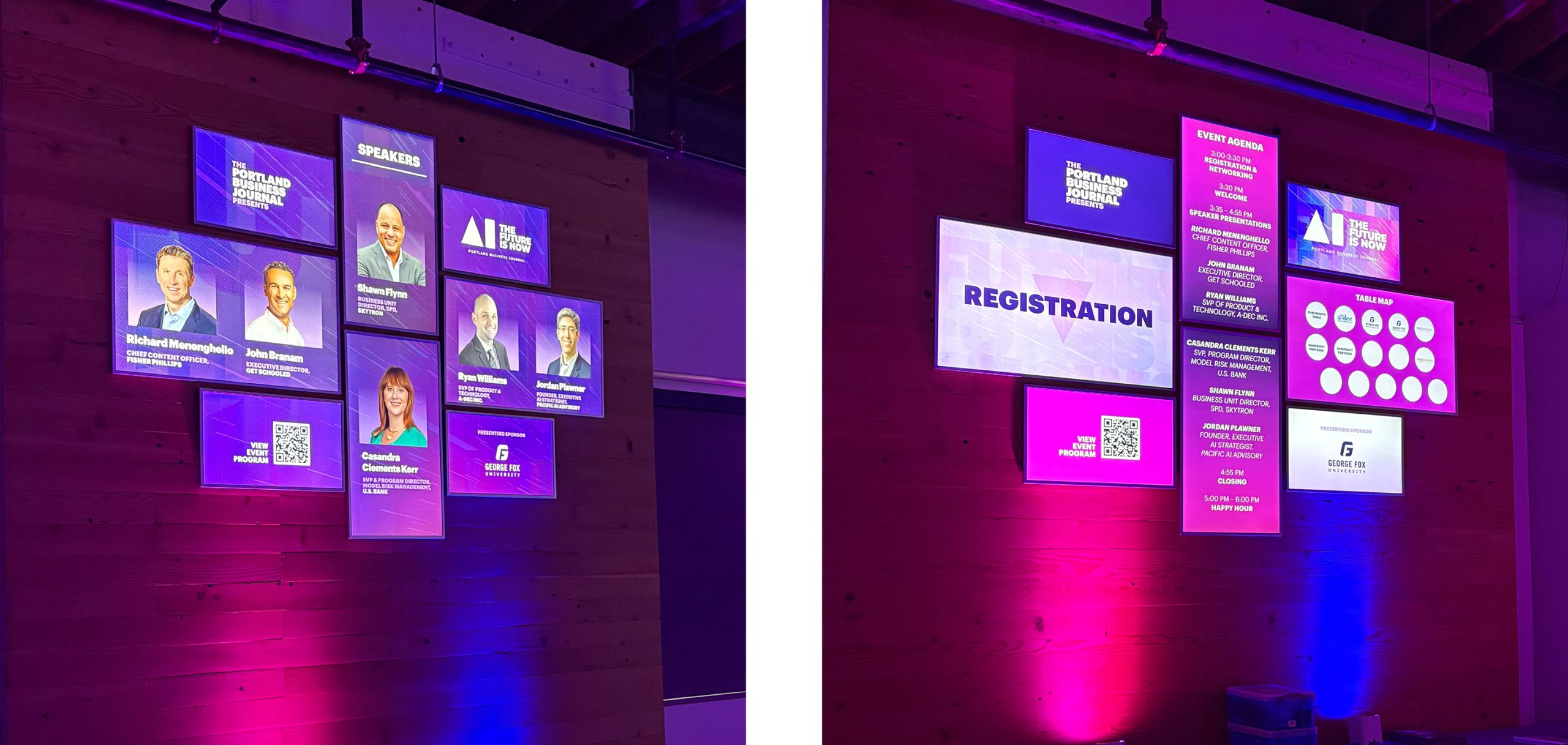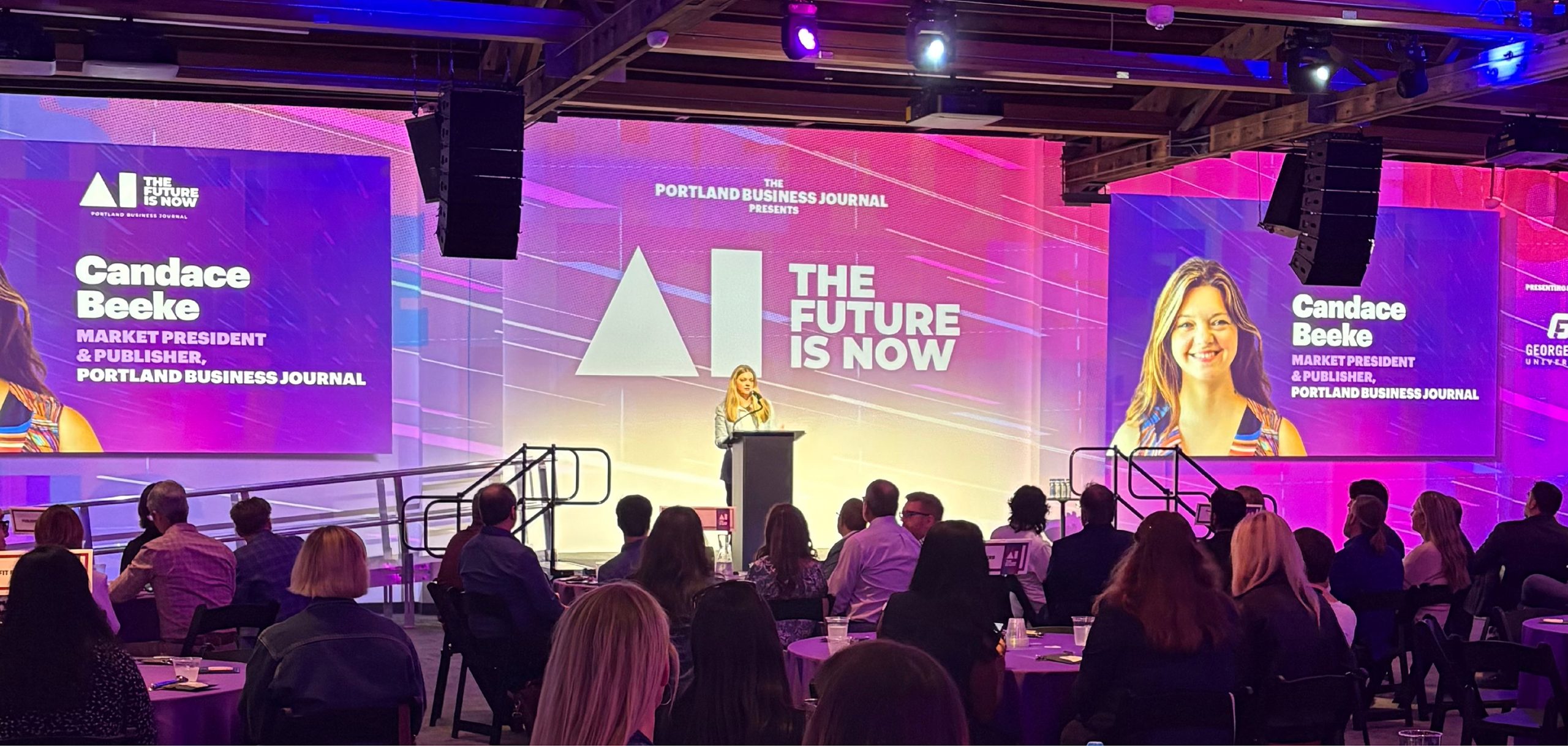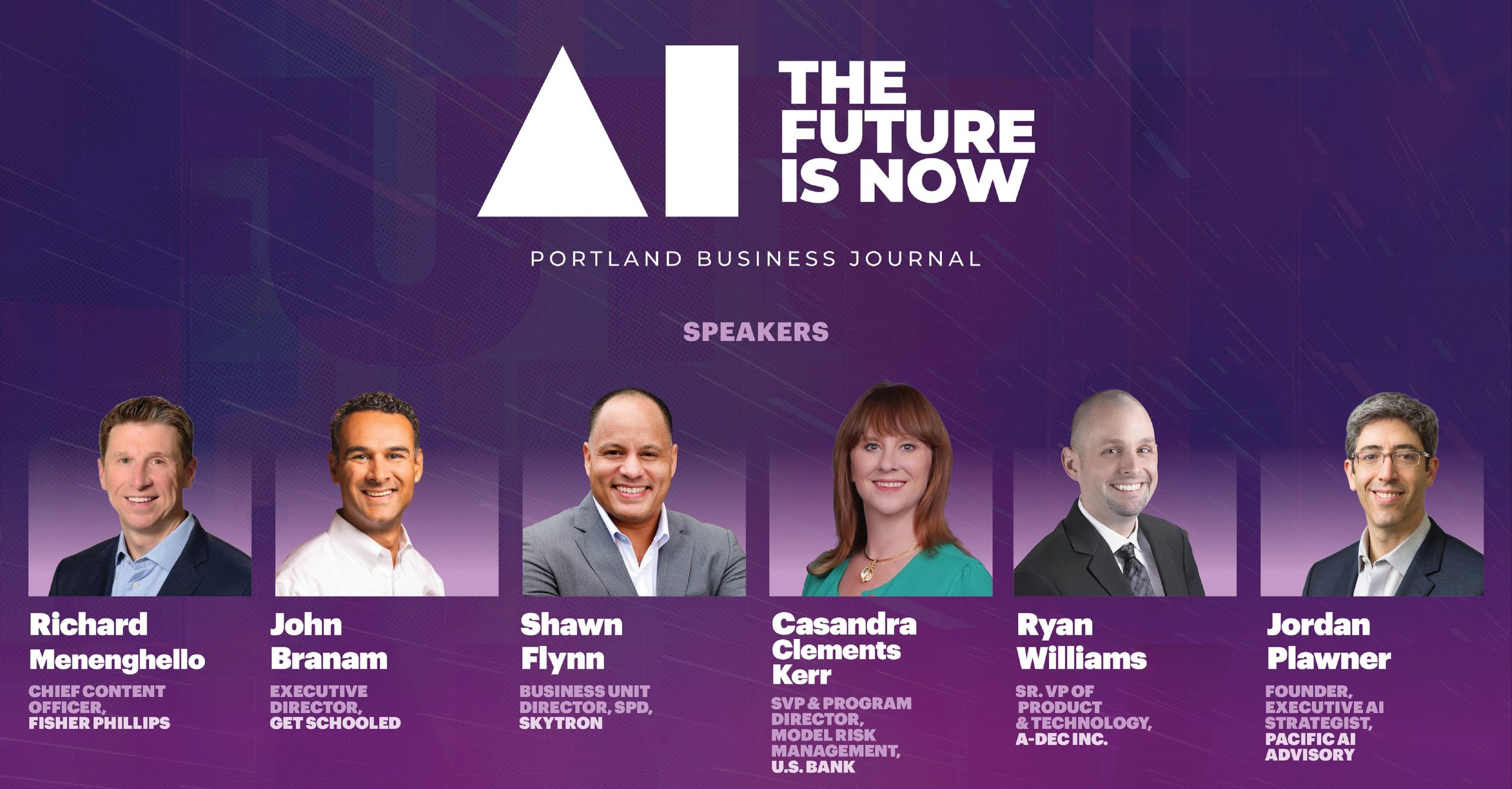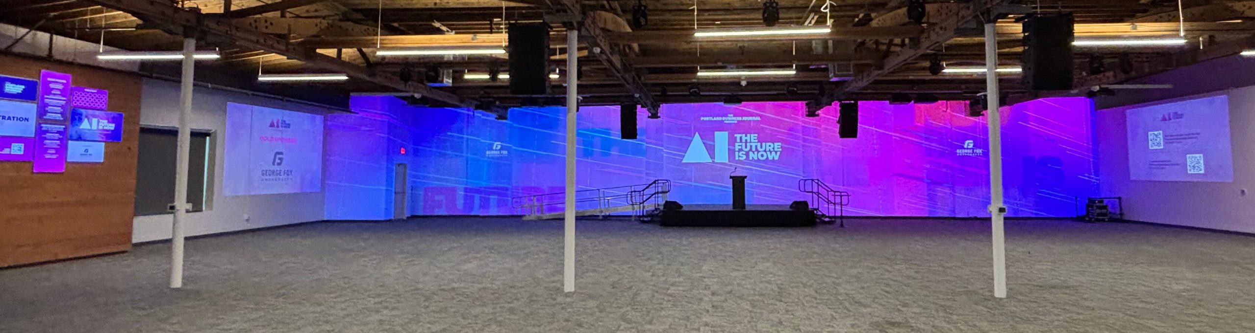 I developed the full brand identity and event design for AI: The Future is Now, a live TED Talks type conference hosted by the Portland Business Journal. My work included the logo, visual design system, and all supporting event materials.